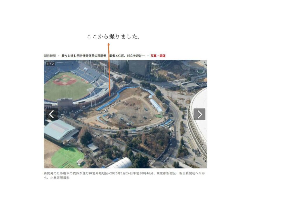 この球場や秩父宮ラグビー場は移設され、100年の杜の多くが移植するか伐採され、高層ビルが三棟建築されます。坂本龍一さんはじめ多くの著名人が神宮の杜保存運動を起こしましたが、それもかなわず、着々と再開発が進められていきます。